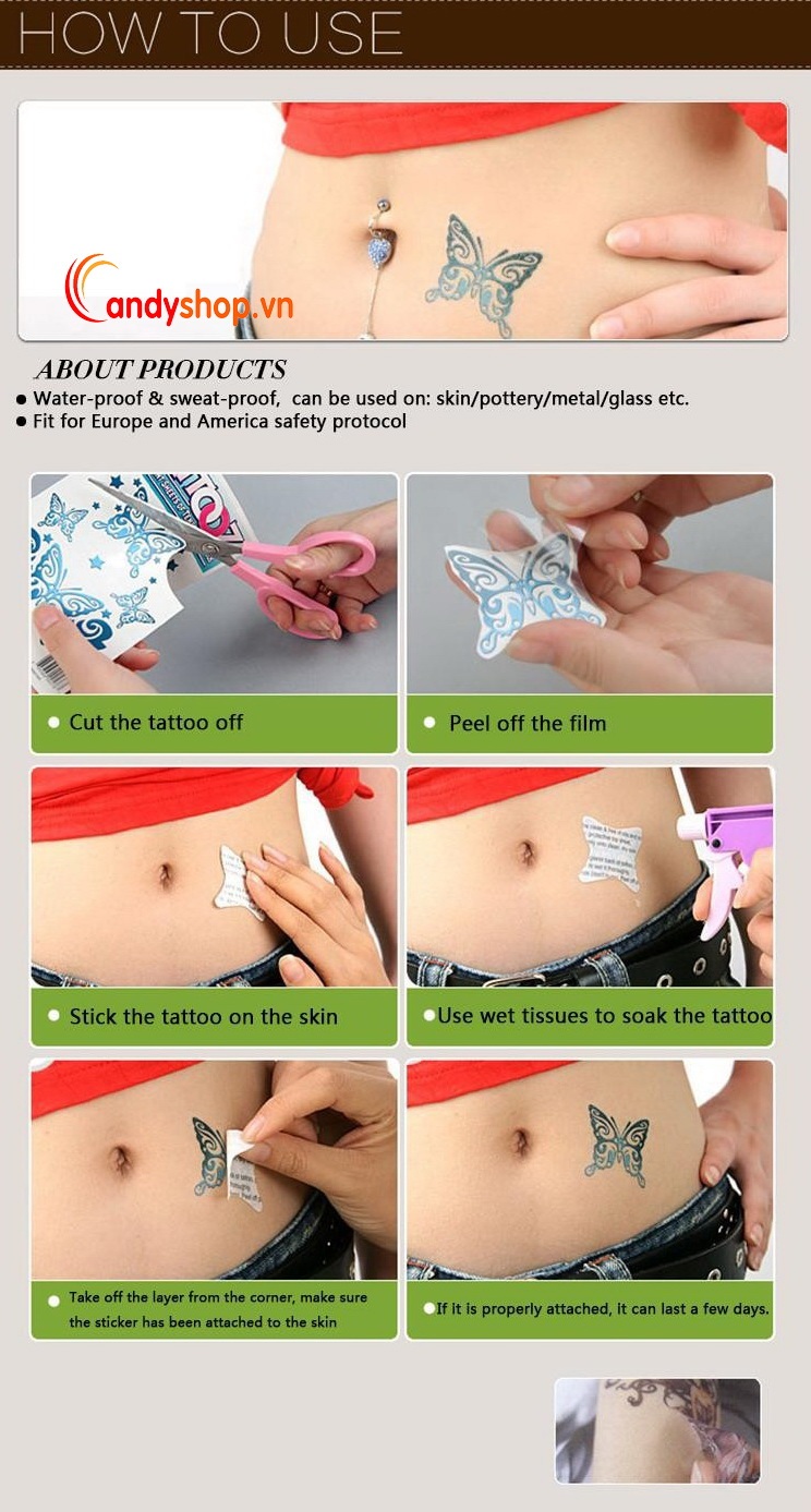 Với hình xăm dán tattoo bạn sẽ không phải ngồi hàng giờ chịu đau đớn mà vẫn có thể có được một hình xăm như ý, với miếng dán có đủ mọi hình dạng, sống động không kém gì hình xăm thật, xăm dán đang trở thành trào lưu mới của giới trẻ hiện nay.