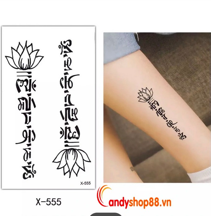 Hình xăm dán tattoo Dòng Chữ Hoa Sen