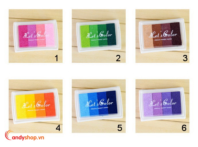 - Điểm đặc biệt của loại mực in này là nó được sản xuất để dùng riêng cho những bộ con dấu xinh xắn ở shop. Có rất nhiều màu sắc cho bạn lựa chọn theo sở thích hay theo hình dáng của con dấu, như màu xanh rêu, xanh mòng két, bạc, hồng pastel…tất cả đều tươi sáng và bền màu khi được in lên giấy. Những hộp mực in được bán lẻ theo màu, nên bạn có thể sưu tập riêng cho mình một bộ những màu yêu thích, hoặc đem tặng bạn bè như một món quà nhỏ cũng rất đáng yêu.