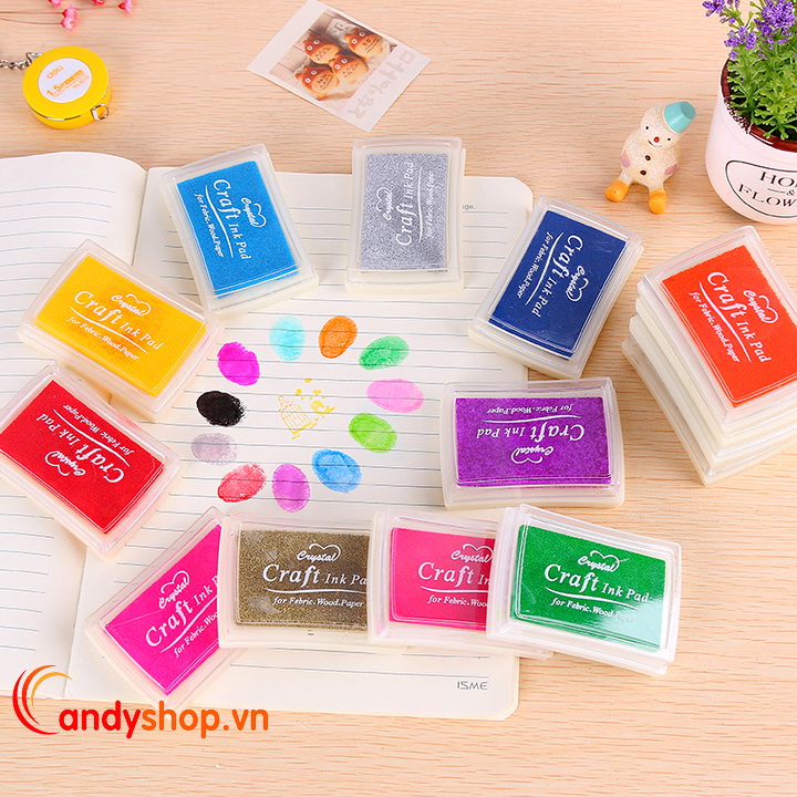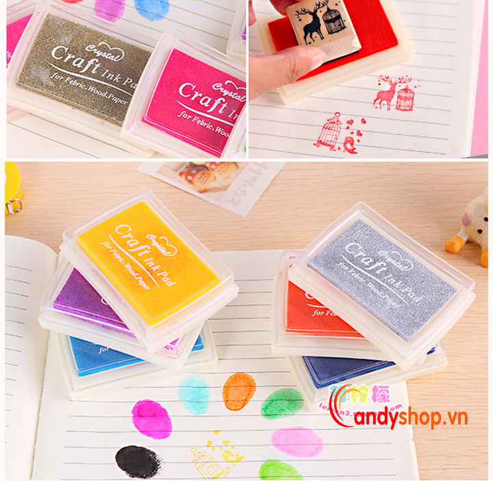 - Điểm đặc biệt của loại mực in này là nó được sản xuất để dùng riêng cho những bộ con dấu xinh xắn ở shop. Có rất nhiều màu sắc cho bạn lựa chọn theo sở thích hay theo hình dáng của con dấu, như màu xanh rêu, xanh mòng két, bạc, hồng pastel…tất cả đều tươi sáng và bền màu khi được in lên giấy. Những hộp mực in được bán lẻ theo màu, nên bạn có thể sưu tập riêng cho mình một bộ những màu yêu thích, hoặc đem tặng bạn bè như một món quà nhỏ cũng rất đáng yêu.