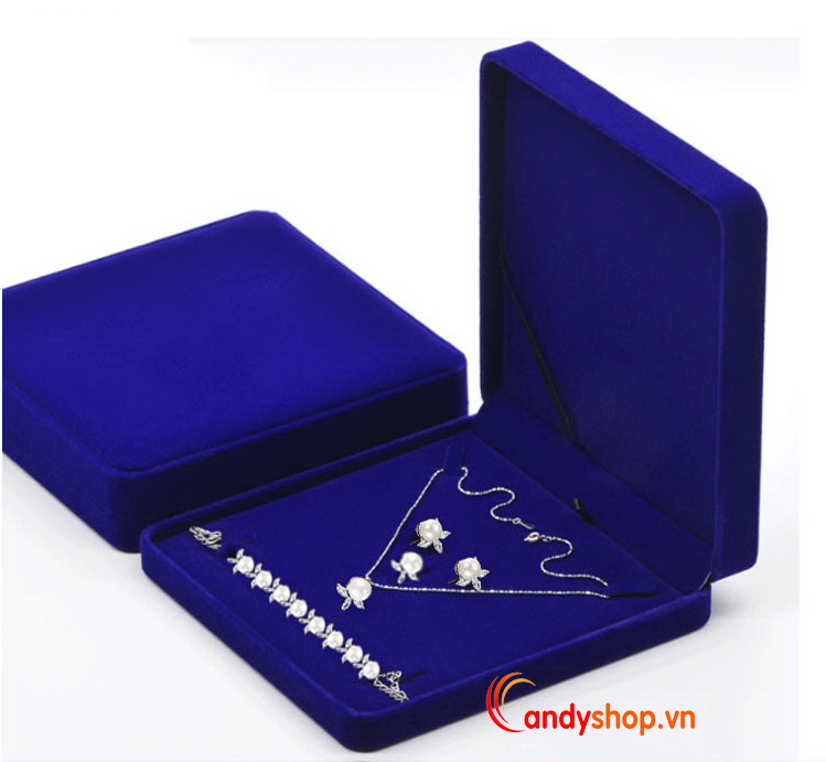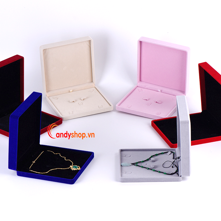Hộp trang sức vải nhung được thiết kế nhiều màu sắc tinh tế, sang trọng, bắt mắt, hợp thời trang, cho các bạn gái tha hồ lựa chọn. Hộp đựng đồ trang sức vải nhung được làm từ chất liệu cao cấp nên rất chắc chắn. Bên ngoài hộp trang sức bọc vải nhung mềm mại, không làm xước, không làm mất đi độ bóng sáng của trang sức.