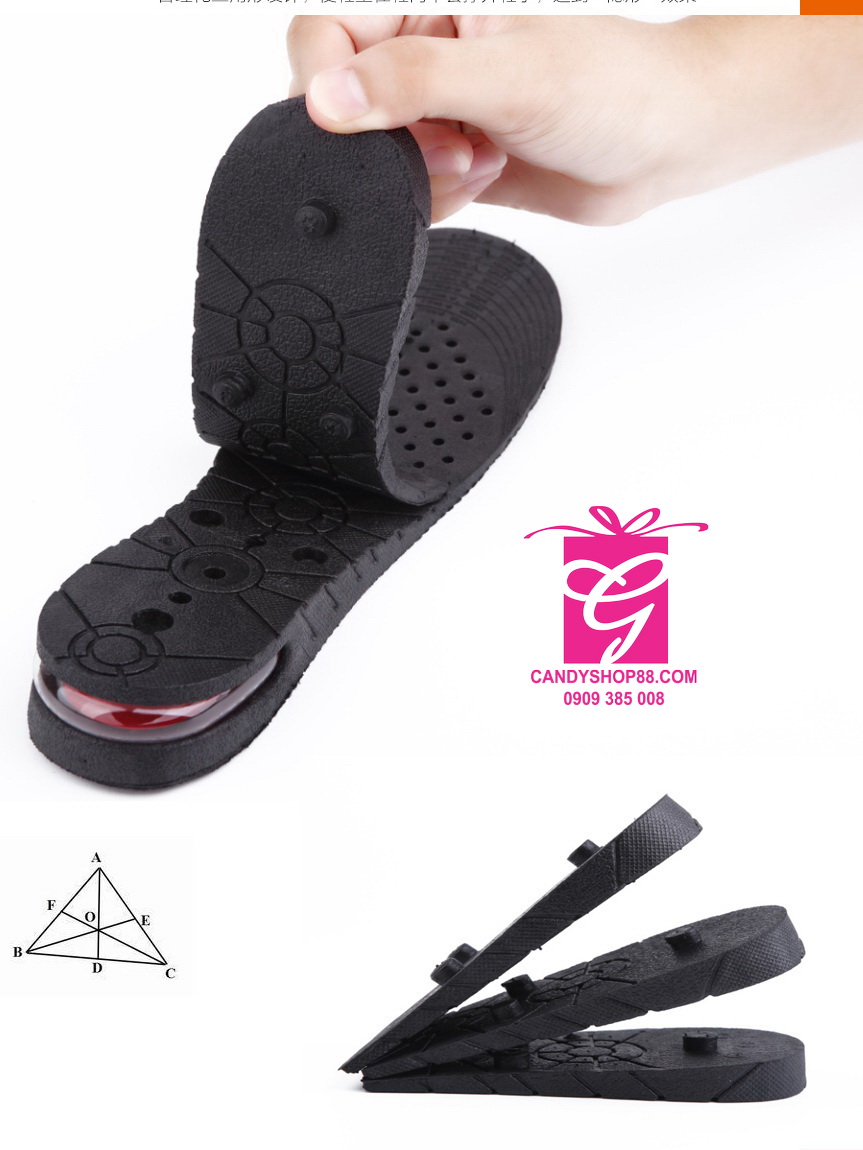Bạn không đủ tự tin khi đứng trước đám đông? chiều cao của bạn luôn là một vướng mắc lớn trong công việc hay giao tiếp của bạn? Chiều cao của bạn đôi khi cũng gây khó khăn cho bạn khi lựa chọn trang phục thích hợp! Giờ đây bạn không cần phải bận tâm về chiều cao "khiêm tốn" của bạn nữa! Miếng lót giày sẽ giúp bạn tăng chiều cao một cách đáng kể mà nhìn vào không hề biết!