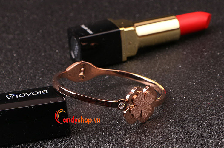Vòng tay titan cỏ 4 lá phủ cát VT12
